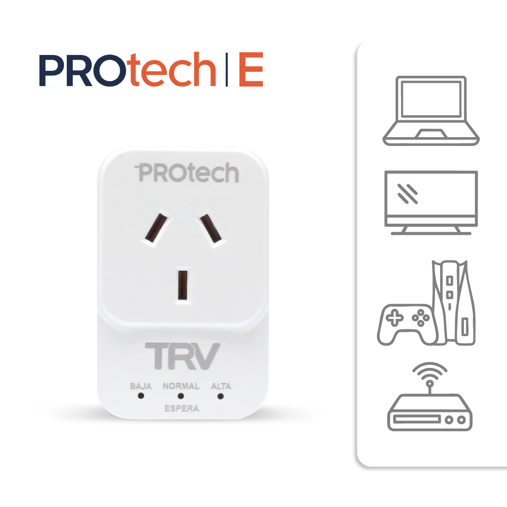 Diseñados específicamente para equipos con compresores que sufren ante los cortes de luz y las variaciones de voltaje. - 1 Protector Protech E (Ideales para TV LED/LCD, computadoras (PC), consolas de juego, microondas, módems y routers.)