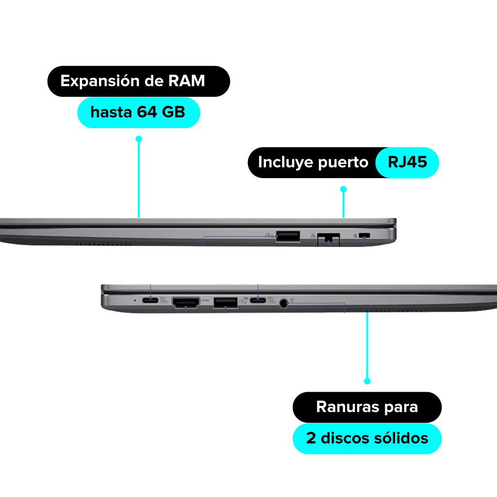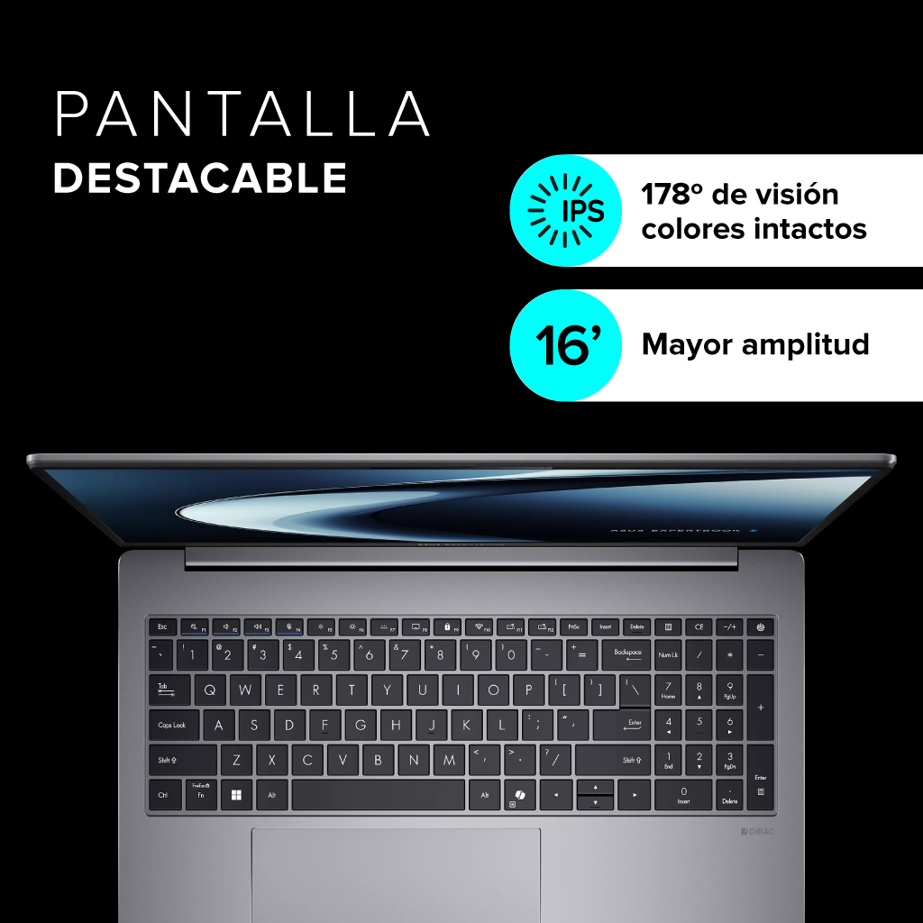 El ASUS ExpertBook P3 ofrece la combinación perfecta de rendimiento, seguridad y portabilidad. Equipado con un procesador de hasta 13.ª generación Intel® Core i5, este portátil maneja sin esfuerzo tareas exigentes. Su impresionante pantalla antirreflejos de 16 pulgadas, full hd +y 16:10 ofrece imágenes envolventes, mientras que la amplia opción de almacenamiento con soporte para doble SSD garantiza que tengas mucho espacio para todos tus archivos. Para mayor seguridad, el ASUS ExpertBook P3 ofrece un sensor de huellas dactilares integrado, protegiendo tus datos confidenciales.